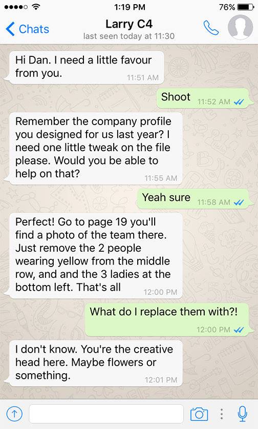 So let’s cut the chat and get back on message. Focus our efforts on clarity. And our brain cells on creativity.