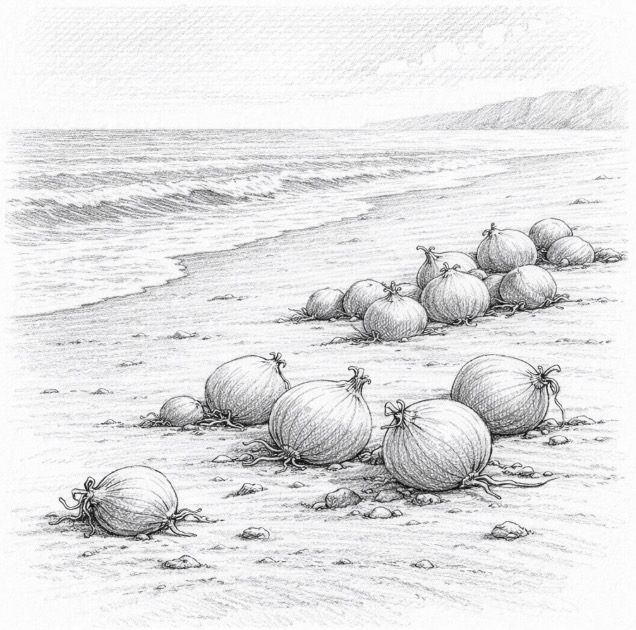 Residents of Brighton Beach woke up to an unusual sight: onions strewn across the sand, carried in by rough seas after cargo containers were lost offshore.