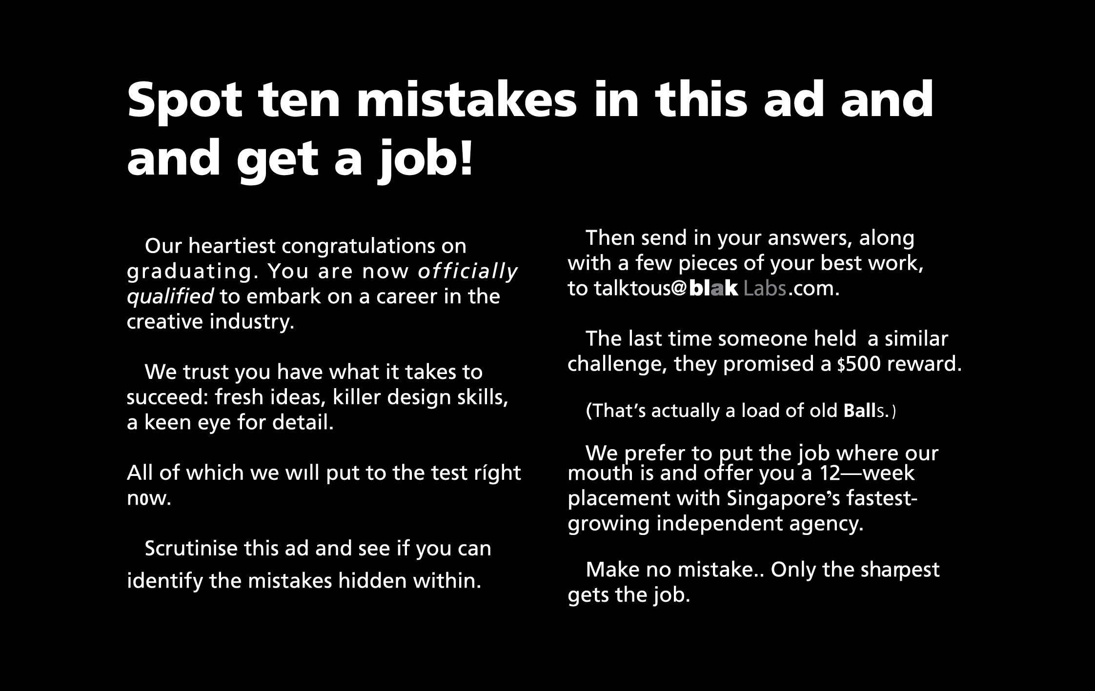 Lim, a recent NAFA graduate, converted his internship with Blak Labs into a full time gig following great work on SIT and other blue chip clients.
